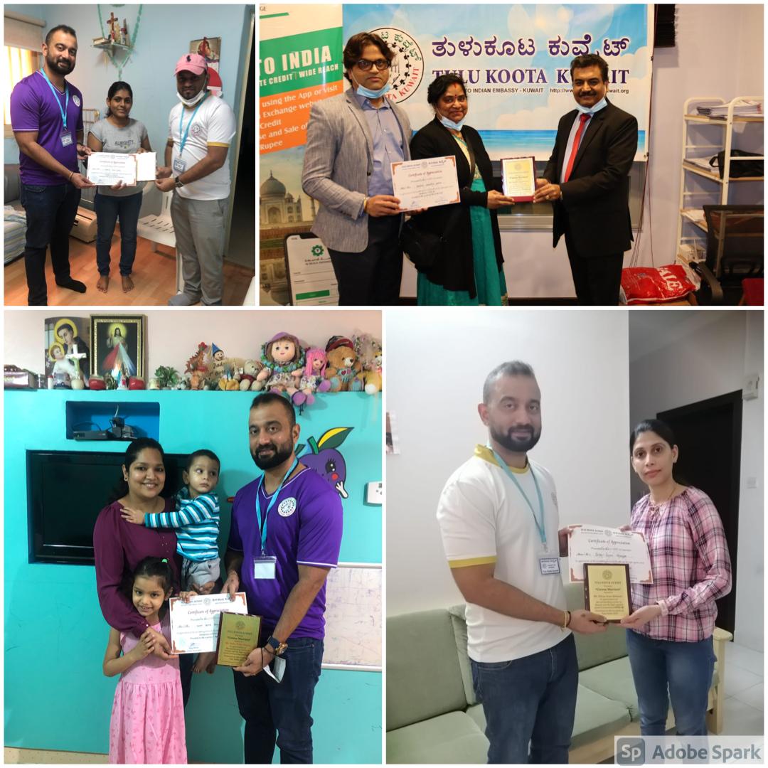 Though it was lockdown time and gatherings were prohibited, Tulukoota Kuwait made an effort to reach them at their homes and honor them with a Memento and appreciation certificate. Around 200 Covid warriors, including doctors, nurses, other staff members, were honored, and others who volunteered tirelessly during the pandemic time. It was a small positive gesture undertaken by the TKK to uplift the spirits of our frontline workers for their dedication, hard work and noble deeds.